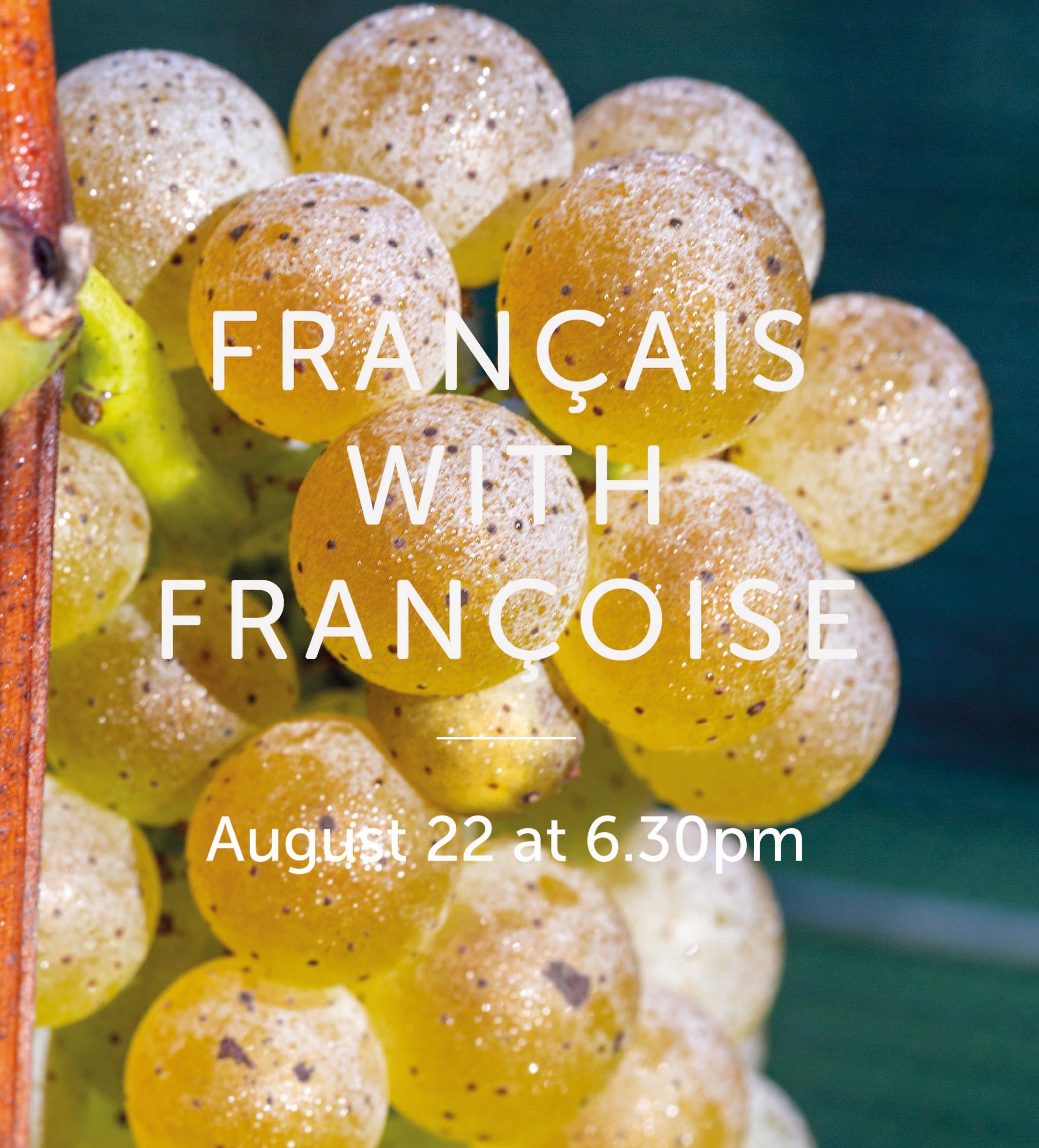 Join us for an evening of French conversation with owner Françoise! The discussion will start at 6:30pm. Guests are welcome to bring their own dinner to enjoy with wine during the talk.